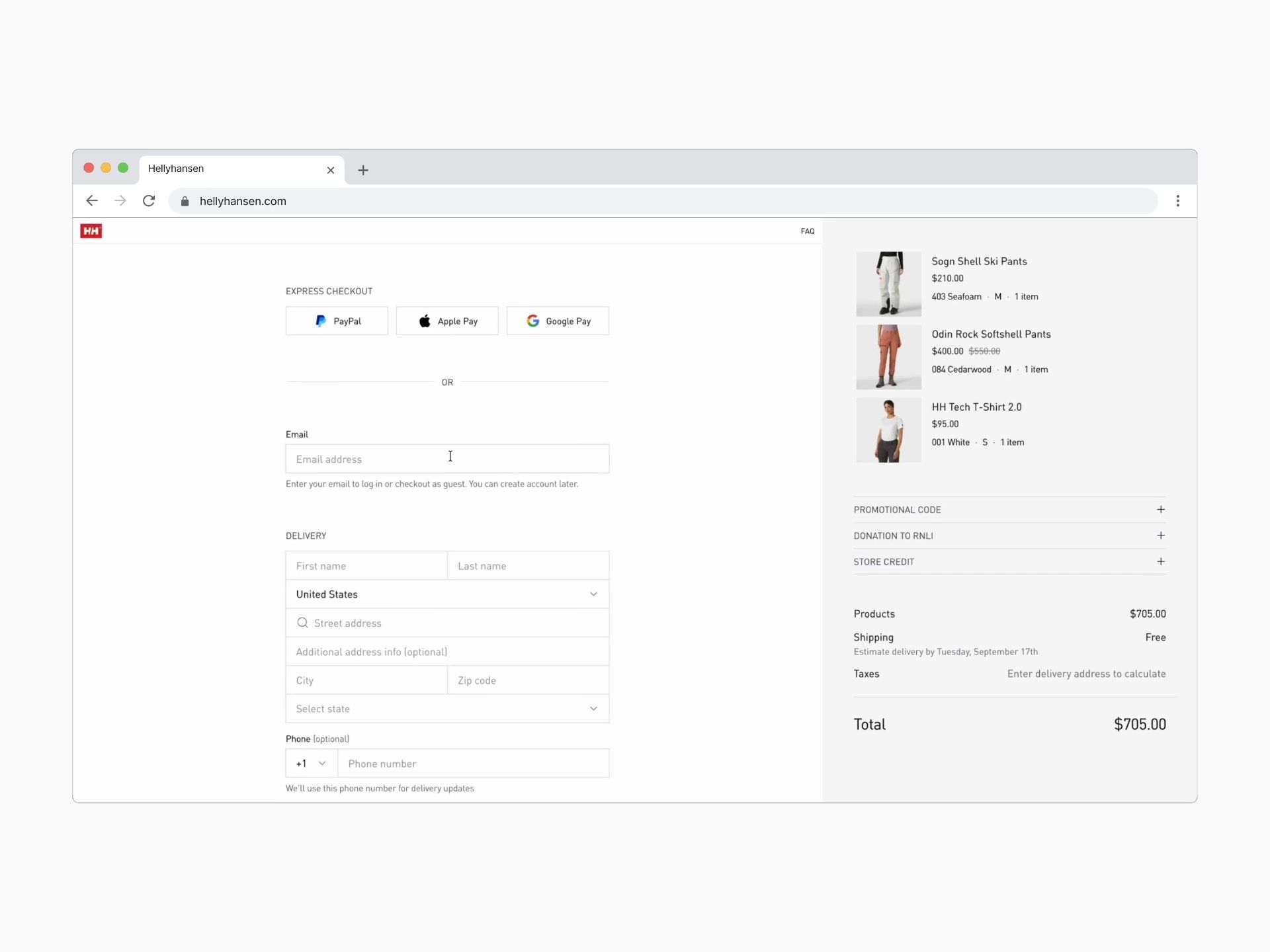 - Full checkout structure visible immediately (Delivery → Shipping → Payment)